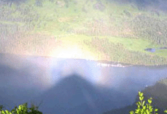 新疆喀納斯湖上空突現(xiàn) “佛光”現(xiàn)象。當(dāng)日游客 在喀納斯觀魚亭旅游觀光,突然發(fā)現(xiàn)在喀納斯湖二道灣上空出現(xiàn)了一個(gè)直徑約數(shù)十米的美麗的七彩光環(huán),甚是壯觀。“佛光”大約持續(xù)了十幾分鐘后便逐漸隱去。