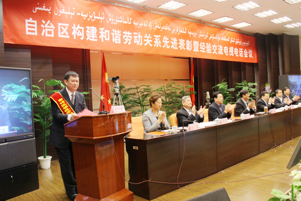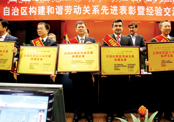 2011年12月17日,在自治區(qū)黨委電視電話會(huì)議室隆重召開的“自治區(qū)構(gòu)建和諧勞動(dòng)關(guān)系先進(jìn)表彰暨經(jīng)驗(yàn)交流電視電話會(huì)議”上,新疆華春投資集團(tuán)榮獲“自治區(qū)模范勞動(dòng)關(guān)系和諧企業(yè)”稱號(hào),受到自治區(qū)黨委、政府的表彰,這是新疆自治區(qū)黨委、政府授予企業(yè)的最高榮譽(yù)。自治區(qū)黨委副書記、自治區(qū)主席努爾•白克力出席會(huì)議并作了重要講話,并與自治區(qū)黨政領(lǐng)導(dǎo)同志會(huì)見了受表彰的模范勞動(dòng)關(guān)系和諧企業(yè)和工業(yè)園區(qū)代表。