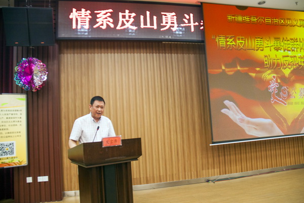 8月11日上午,自治區(qū)見(jiàn)義勇為基金會(huì)“情系皮山勇斗暴徒群體 助力反恐英模重建家園”獻(xiàn)愛(ài)心動(dòng)員會(huì)在自治區(qū)人民檢察院隆重舉行。自治區(qū)黨委政法委副書(shū)記、見(jiàn)義勇為基金會(huì)常務(wù)副理事長(zhǎng)劉克勤與自治區(qū)紀(jì)檢監(jiān)察廳、司法廳、審計(jì)廳、公安廳等黨政領(lǐng)導(dǎo)以及新聞媒體參會(huì)。