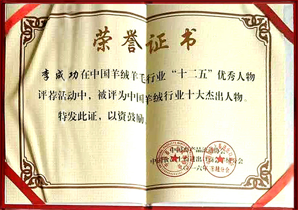 在3月28-30日中國畜產(chǎn)品流通協(xié)會第二十三屆全國絨毛會議上,李成功總裁以其在新疆羊絨紡織服裝產(chǎn)業(yè)的貢獻(xiàn),榮獲“十二五”期間中國羊絨行業(yè)十大杰出人物稱號;作為行業(yè)龍頭的新疆華春毛紡有限公司榮獲“十二五”期間中國絨毛行業(yè)科技創(chuàng)新獎(jiǎng)、“十二五”期間中國羊絨行業(yè)20強(qiáng)企業(yè)、2015年度中國羊絨行業(yè)綜合實(shí)力20強(qiáng)企業(yè)。