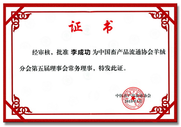新疆華春集團李成功總裁當選為中國畜產(chǎn)品流通協(xié)會羊絨分會常務(wù)理事