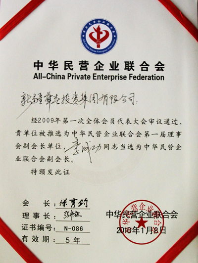 于新一年的1月底在北京召開的中華民營企業(yè)聯合會年會和中國民營科技實業(yè)家協會2010年新春團拜會上,總裁李成功先生分別當選為中華民營企業(yè)聯合會副會長和中國民營科技實業(yè)家協會副理事長,華春投資集團成為中華民營企業(yè)聯合會副會長單位。同時,華春投資集團還在由中國品牌發(fā)展組織委員會舉辦的評選活動中榮獲2009中國品牌社會責任貢獻獎,總裁李成功先生被授予2009中國品牌創(chuàng)新人物稱號。