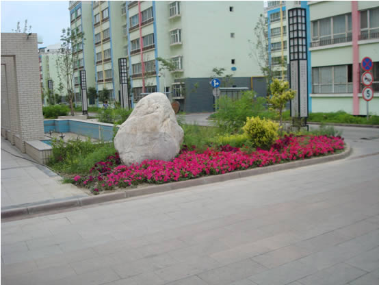蘇杭明珠花園小區內總高近百米、地上建筑31層的華春鑫座,是河南東路地標性建筑,打造華春鑫座周圍的園林綠化更是這項綠化工作的重點之一,僅華春鑫座周圍的園林綠化,公司就投資100余萬元。華春鑫座周圍地面全部為花崗巖石材鋪貼,修建了廊架、亭臺、大小花壇共計9個,花壇內種植了各色花卉,鵝卵石及青石板鋪貼的休閑園路,人性化的休息座椅隨處可見,給主業創造了一個愜意的休閑小憩的綠色環境。