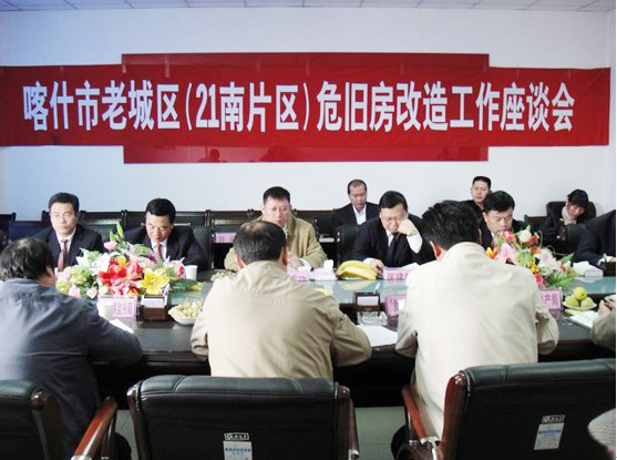 10月26日,李總裁攜考察團一行14人赴喀什市針對“村鎮及社區銀行的設立條件、老城區危舊房改造、開拓國內國際貿易”等內容進行考察,喀什市委常委艾薩江•艾亥提,副市長徐建榮、喀什銀監分局、市國土局、市招商局等領導參加了座談會。