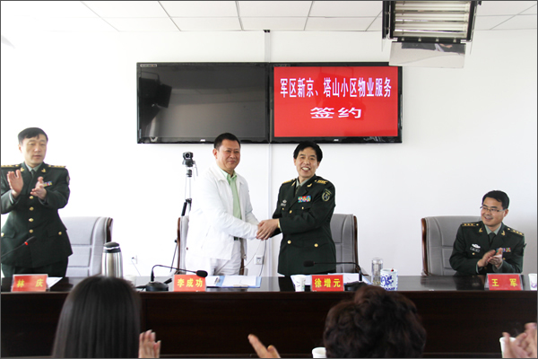 5月3日,新疆軍區新京、塔山2個小區與新疆華景物業服務有限公司的簽約儀式在新疆軍區房管局隆重舉行,新疆華春投資集團董事局主席兼總裁李成功先生與軍區房管局徐增元局長簽訂了合作協議,標志著雙方結成戰略合作伙伴。集團董事王春容、總裁助理李榮桂、集團黨委、工會、行政辦負責人及華景物業管理團隊等一并參加了簽約儀式。