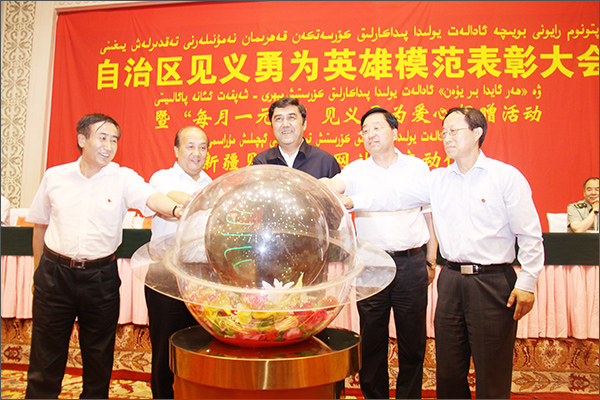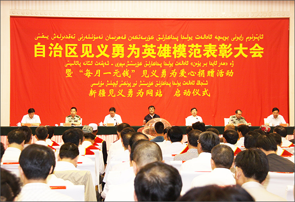 “總有一種力量讓我們熱淚盈眶,總有一種精神讓我們格外振奮!總有一種感動讓我們持久難忘。”自治區黨委副書記、自治區主席、自治區綜治委主任努爾•白克力出席解讀了此次表彰大會的深層涵義:通過弘揚見義勇為精神,激發人民群眾共建平安,引領積極向上的社會風尚,就是把中華民族的核心精神和優秀文化發揚光大。就會為凝聚民族合力,推進中華民族偉大復興的“中國夢”,全面建成小康社會創造有利條件。努爾•白克力說:今天受表彰的3名見義勇為英雄、2個見義勇為英雄群體和13個為自治區見義勇為事業作出突出貢獻的模范單位、個人就是他們中的杰出代表。他們是新疆各族人民群眾的優秀兒女,是我們時代的百姓英雄和社會楷模!