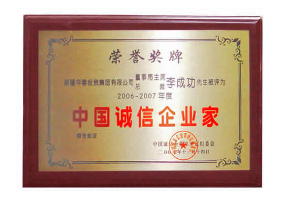 “06-07年度中國誠信企業(yè)家”榮譽(yù)證書
