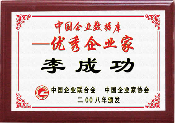 “中國企業(yè)數(shù)據(jù)庫--優(yōu)秀企業(yè)家”入庫證書