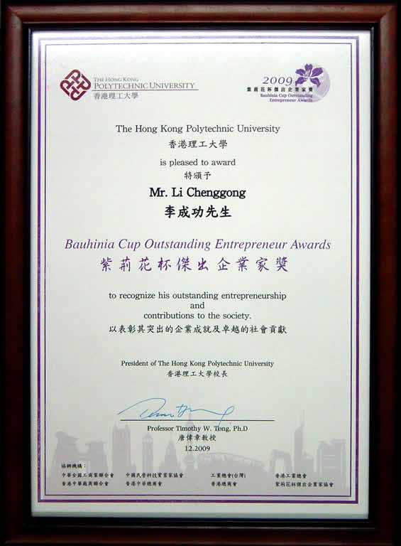 “2009中國(guó)十大誠(chéng)信企業(yè)家”榮譽(yù)證書(shū)